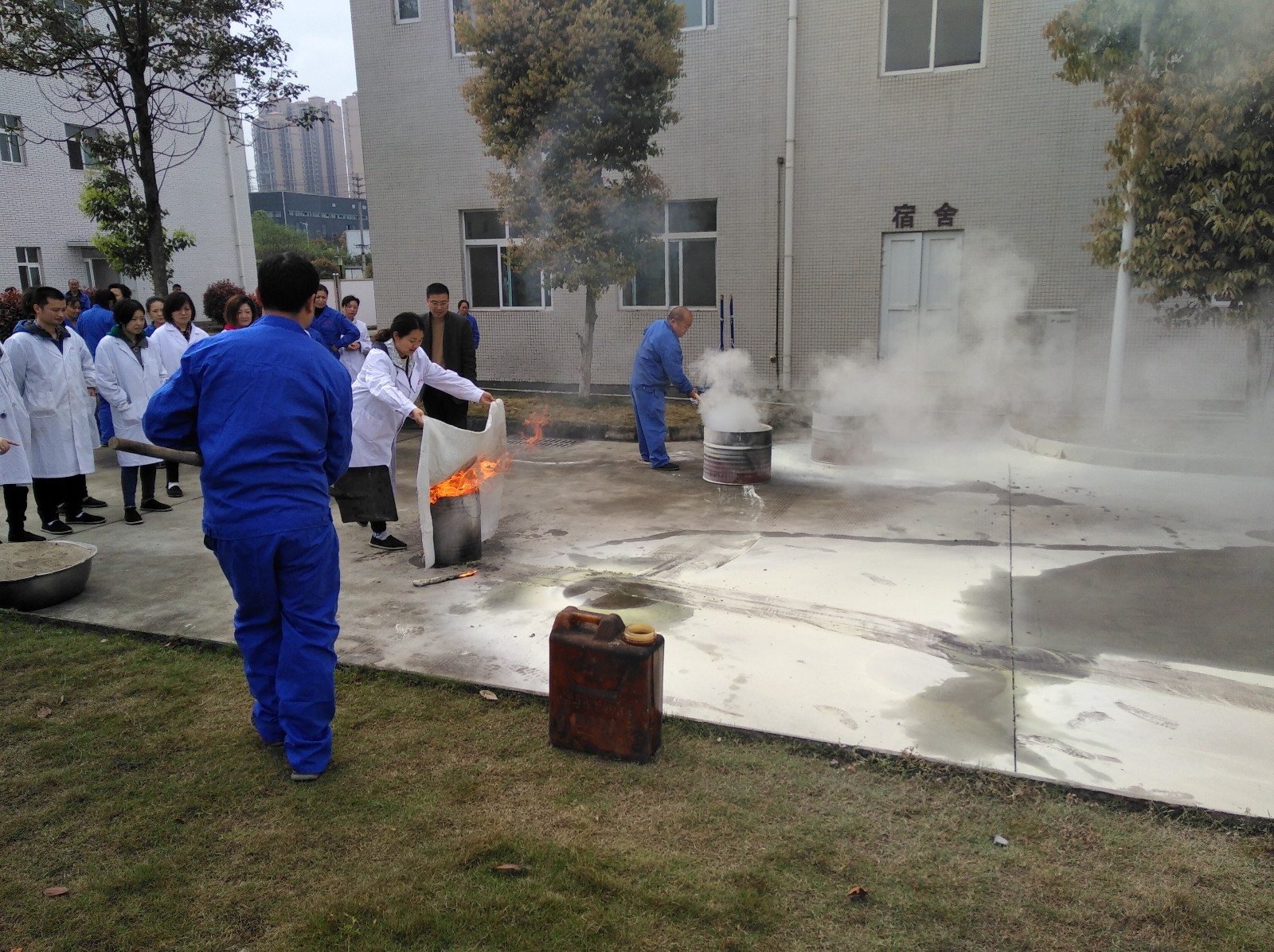 動員(yuan)結束后,全體人員(yuan)在王(wang)鋒(feng)先生的帶領下(xia),進行了(le)消防應急疏散演練(lian)和干粉滅火器及(ji)滅火毯(tan)的實際操作、模(mo)擬廠區火災(zai)發生時報告機制及(ji)現場(chang)滅火。